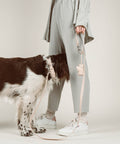 Si tu as besoin d'encore plus de liberté de mouvement, tu peux facilement étendre la laisse avec notre Leash Extension et accrocher ta laisse autour de toi pour avoir les deux mains libres.